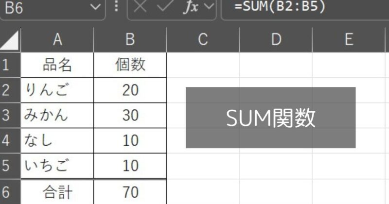 これは指定したセルの数値を合計したい時に使う関数です。