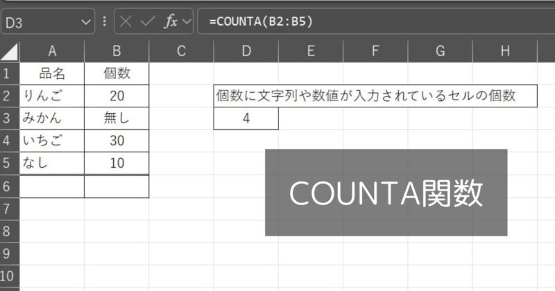 次は【個数のカウント】をする関数です。