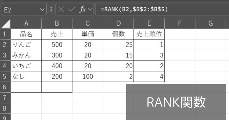 次は【ランキングをつける】関数です。