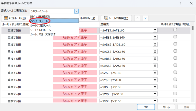 そうすると膨大な量の条件付き書式が出てくる可能性があります。