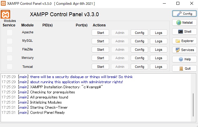 これでxamppを再起動しMySQLを起動します。